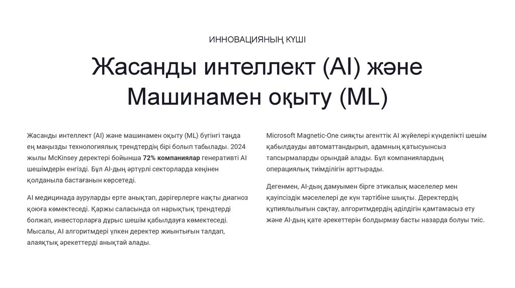 ИННОВАЦИЯНЫҢ КҮШІЖасанды интеллект (AI) және