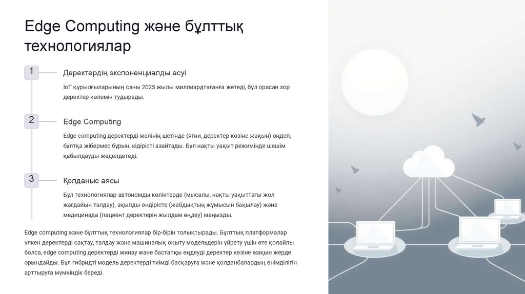 Edge computing деректерді желінің шетінде (яғни, деректер көзіне жақын) өңдеп,