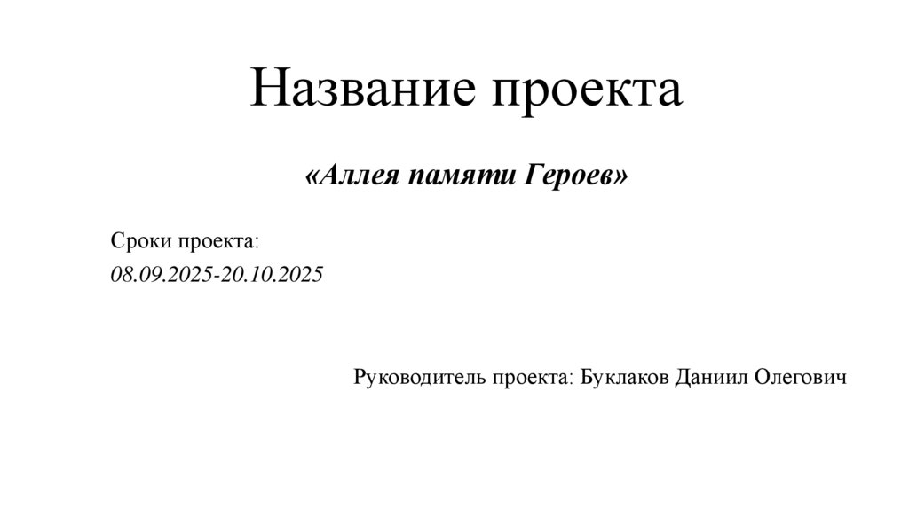 1. Название проекта «Аллея памяти Героев»