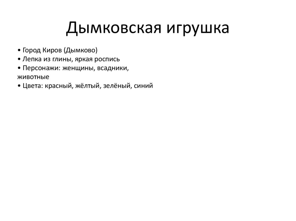 Русские народные промыслыПалехская роспись, Хохлома, Дымковская игрушка