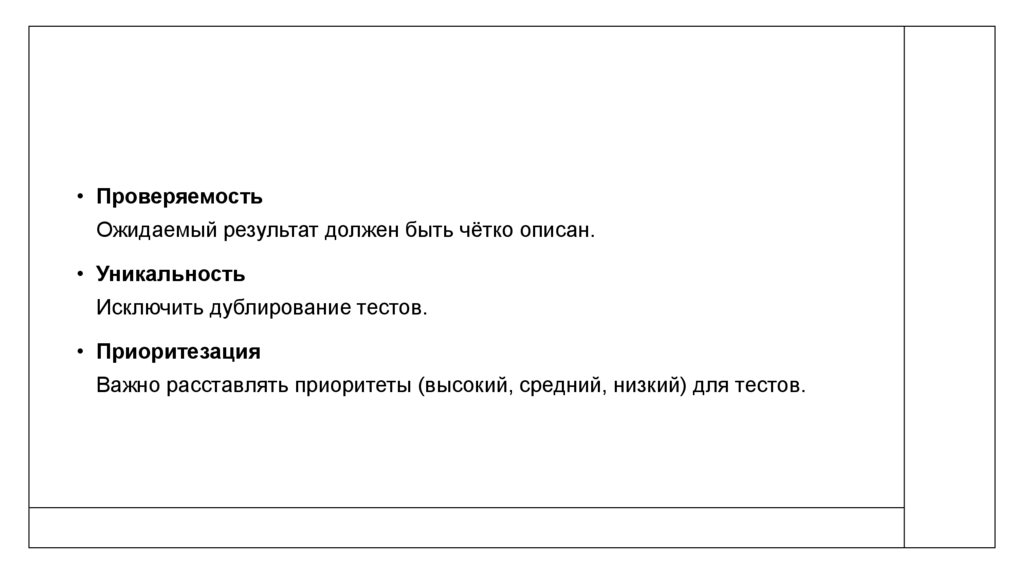 • ПроверяемостьОжидаемый результат должен быть чётко описан.