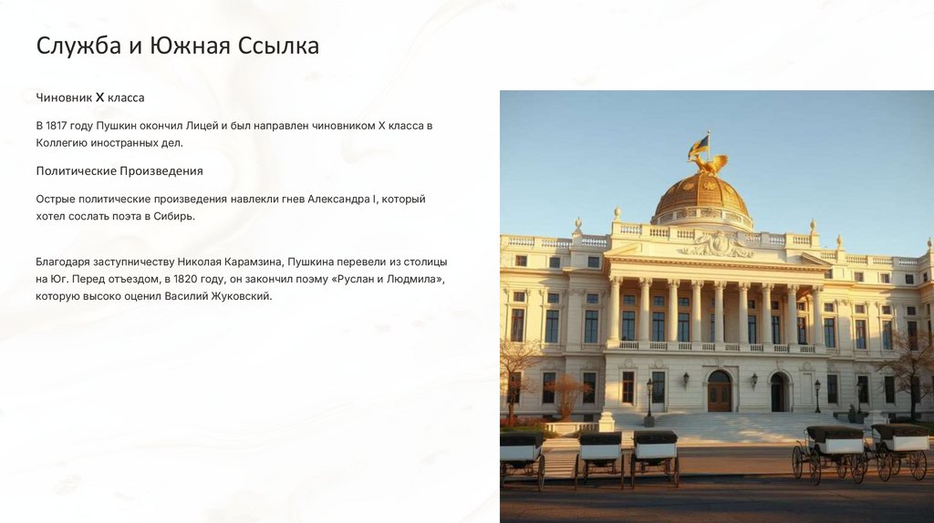 В 1817 году Пушкин окончил Лицей и был направлен чиновником X класса в