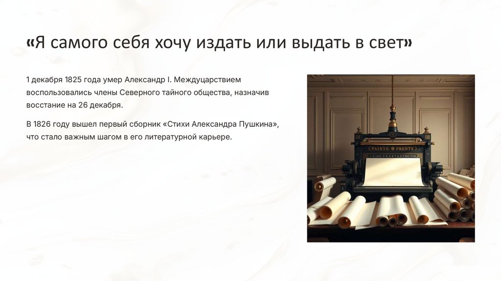 «Я самого себя хочу издать или выдать в свет»1 декабря 1825 года умер Александр I. Междуцарствием