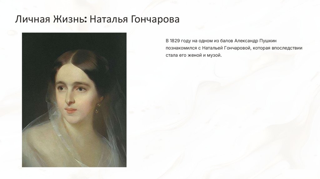 Личная Жизнь: Наталья ГончароваВ 1829 году на одном из балов Александр Пушкин