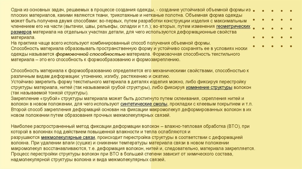 Наиболее распространенный метод фиксации деформации волокон – влажно-тепловая обработка (ВТО), при