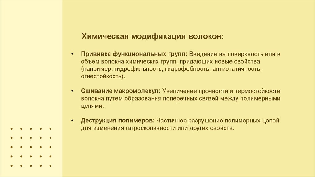 Химическая модификация волокон:Прививка функциональных групп: Введение на поверхность или в