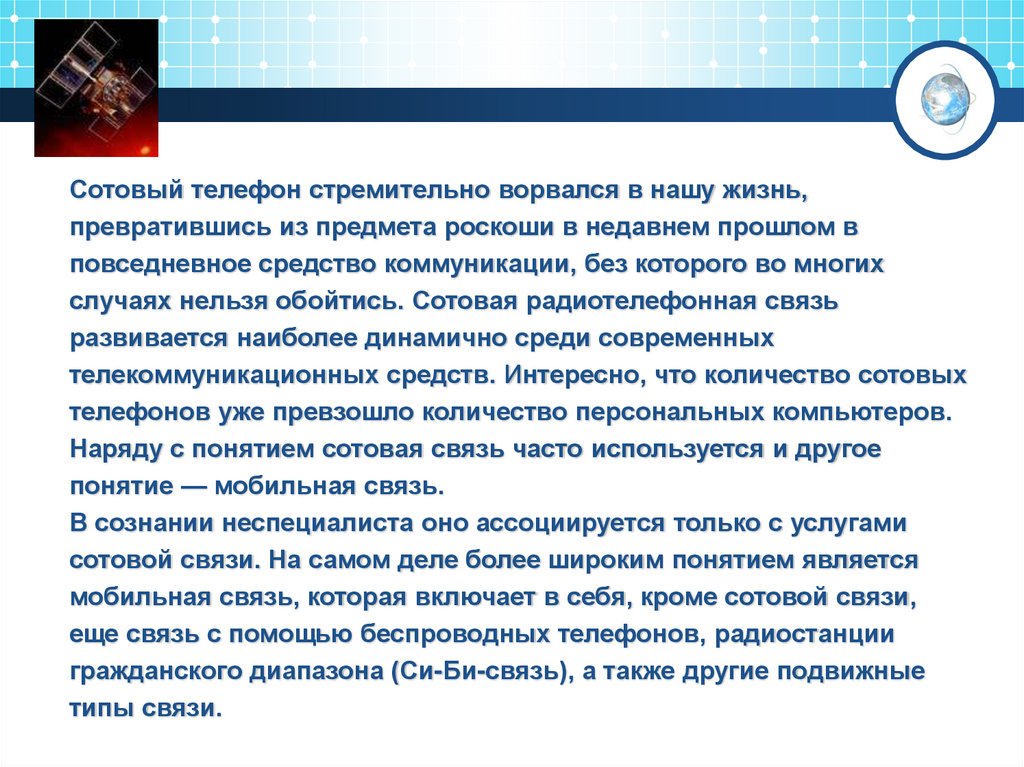 Сотовый телефон стремительно ворвался в нашу жизнь,превратившись из предмета роскоши в недавнем прошлом в