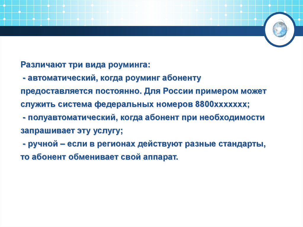пользоваться связью в любом регионе зоны роуминга. При этом