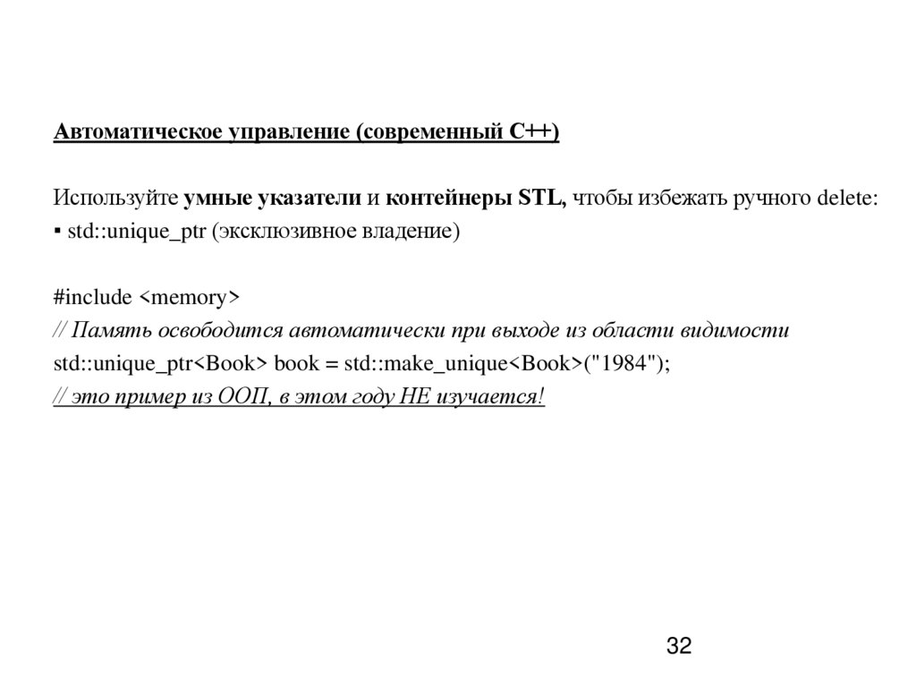 1. Страуструп Б. Язык программирования C++. Москва: Вильямс, 20112. Мейерс С. - Эффективный и современный C++. 42 рекомендации по