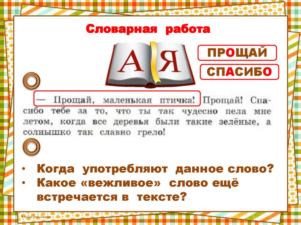 Словарная работаПРОЩАЙ