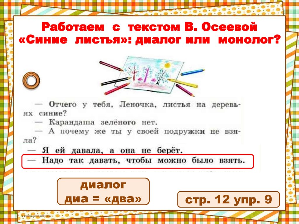 Работаем с текстом В. Осеевой«Синие листья»: диалог или монолог?