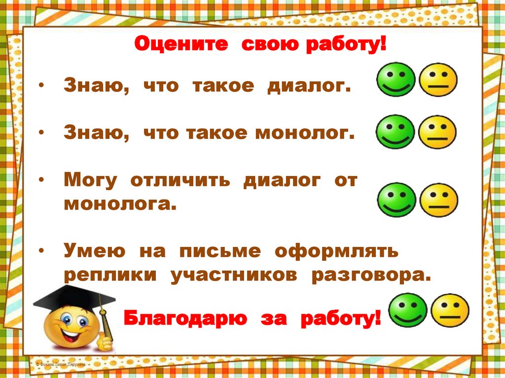 Оцените свою работу!• Знаю, что такое диалог.