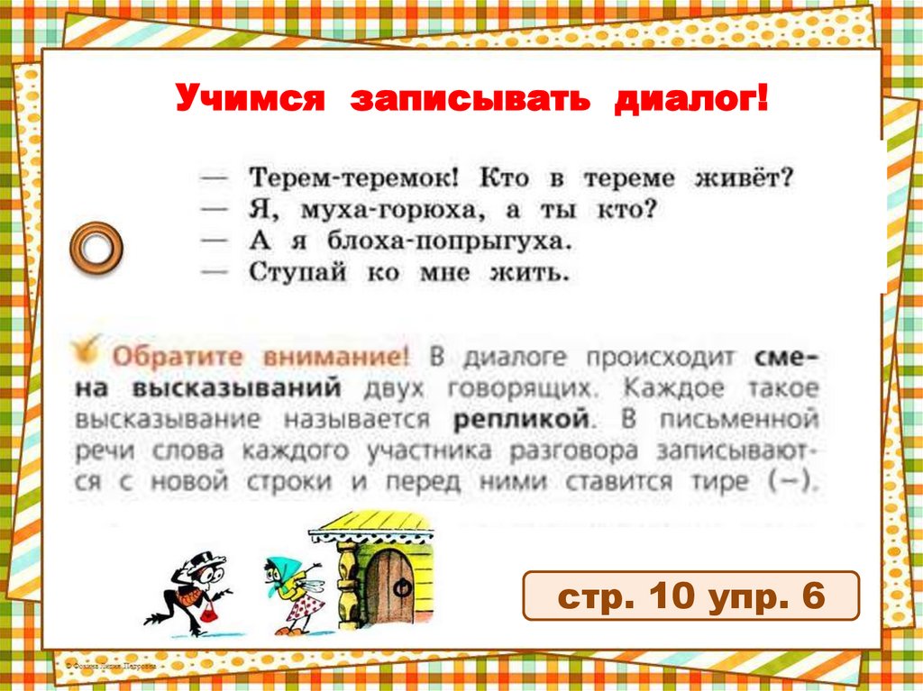 Учимся записывать диалог!стр. 10 упр. 6