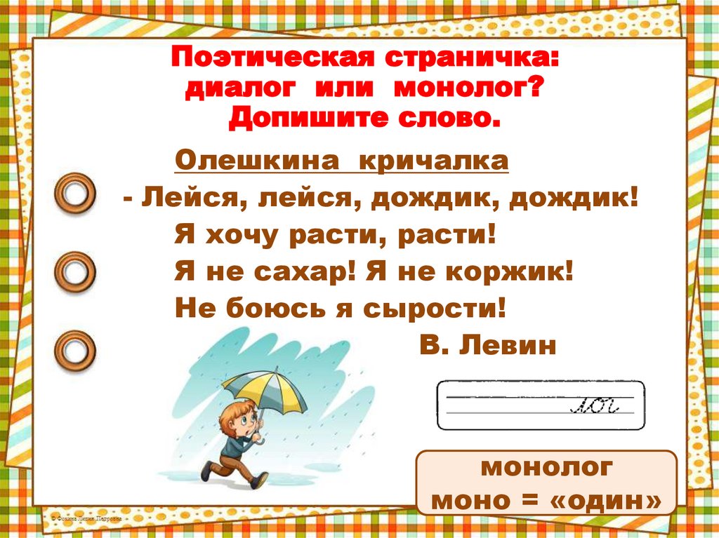 Диалог и монолог. 2 класс