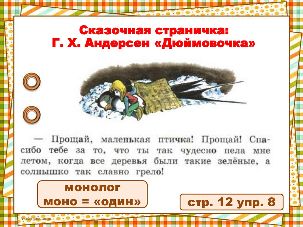 Сказочная страничка:Г. Х. Андерсен «Дюймовочка»