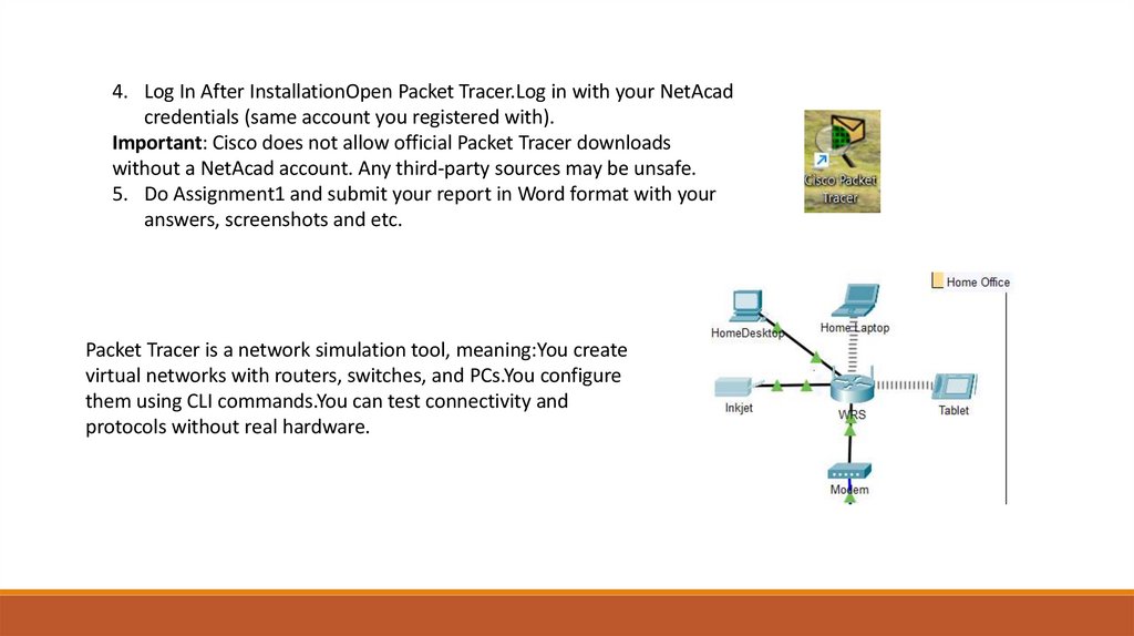 4. Log In After InstallationOpen Packet Tracer.Log in with your NetAcadcredentials (same account you registered with).