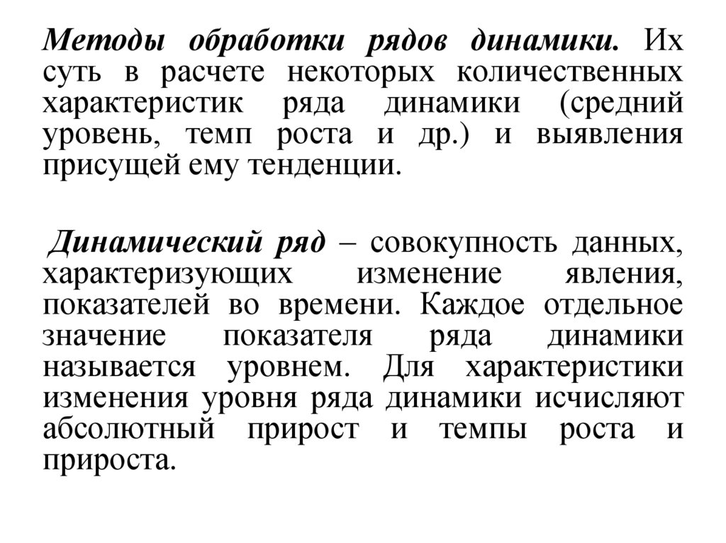 Методы обработки рядов динамики. Ихсуть в расчете некоторых количественных
