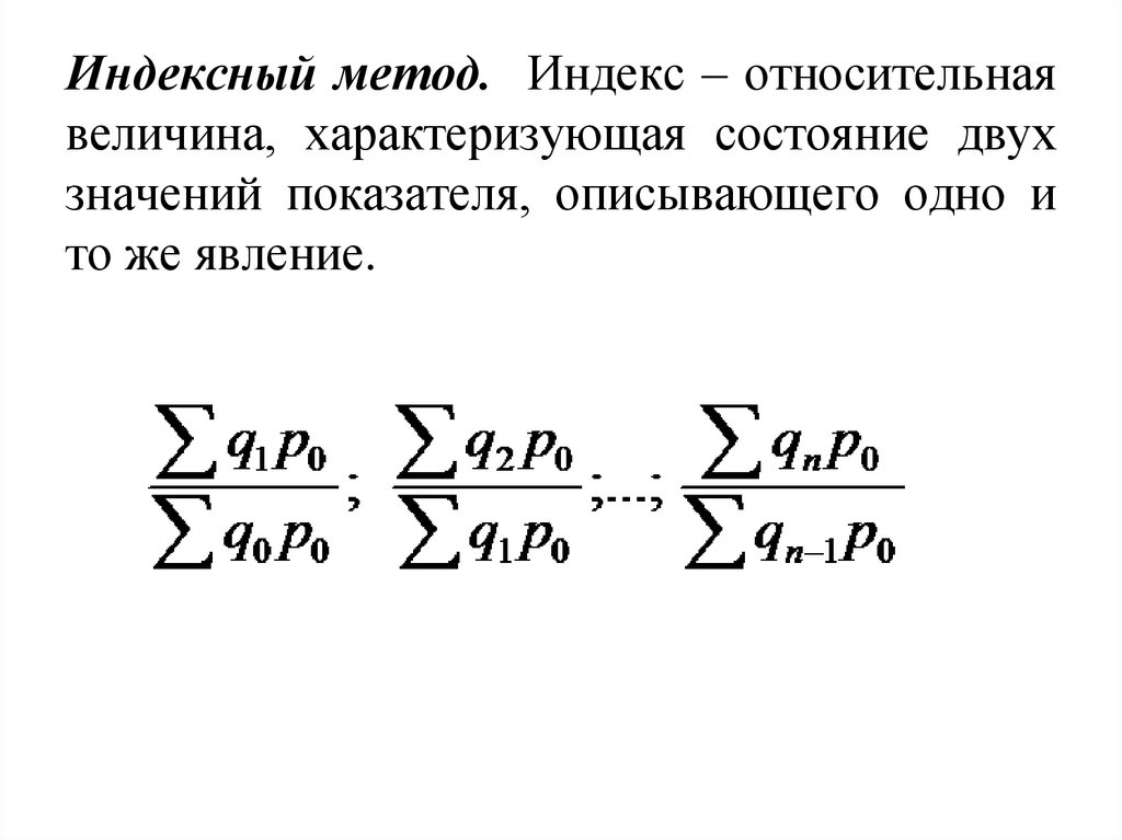 Индексный метод. Индекс – относительнаявеличина, характеризующая состояние двух