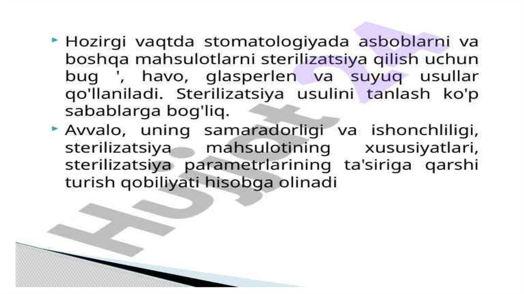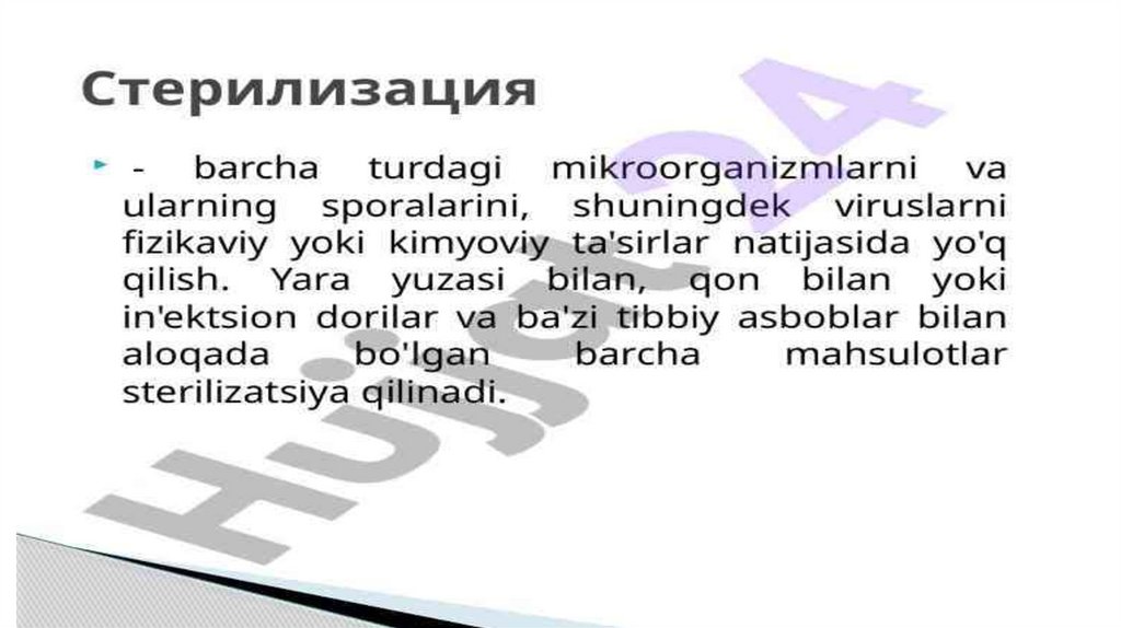 Sterilizatsiyaga talablar.