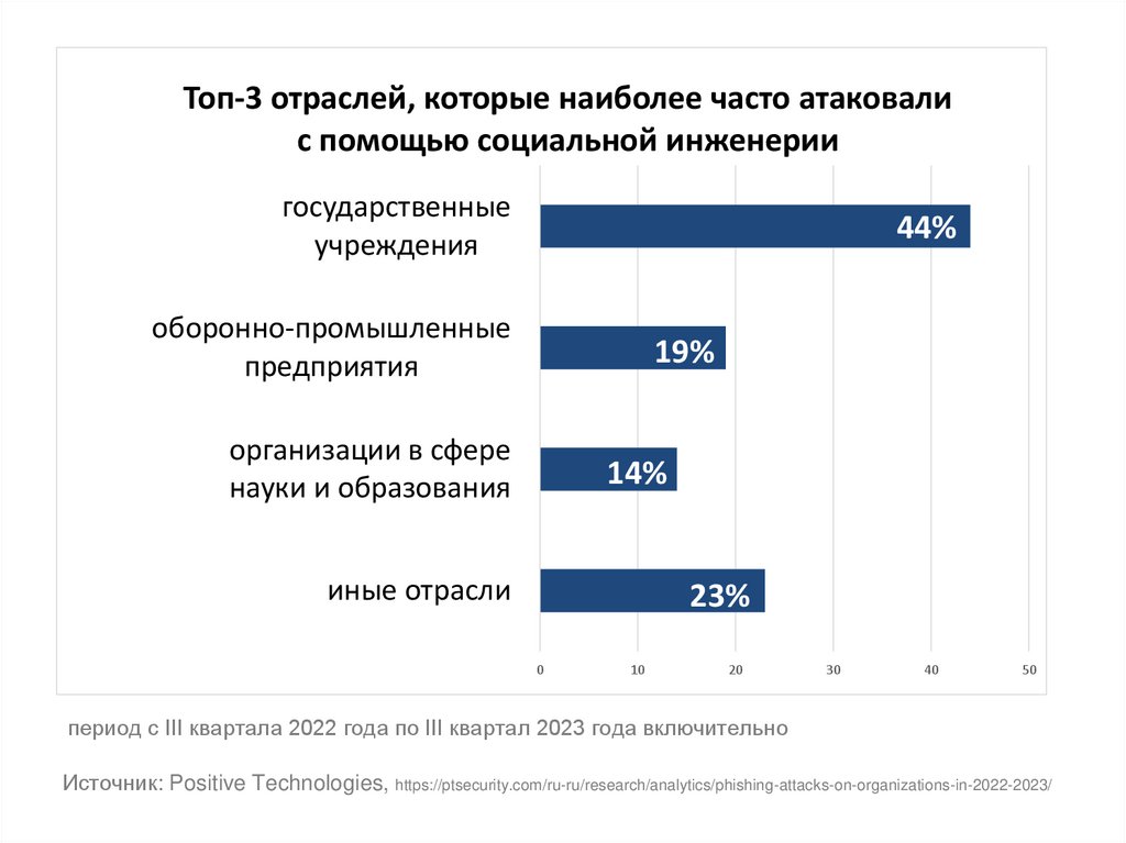 Топ-3 отраслей, которые наиболее часто атаковалис помощью социальной инженерии