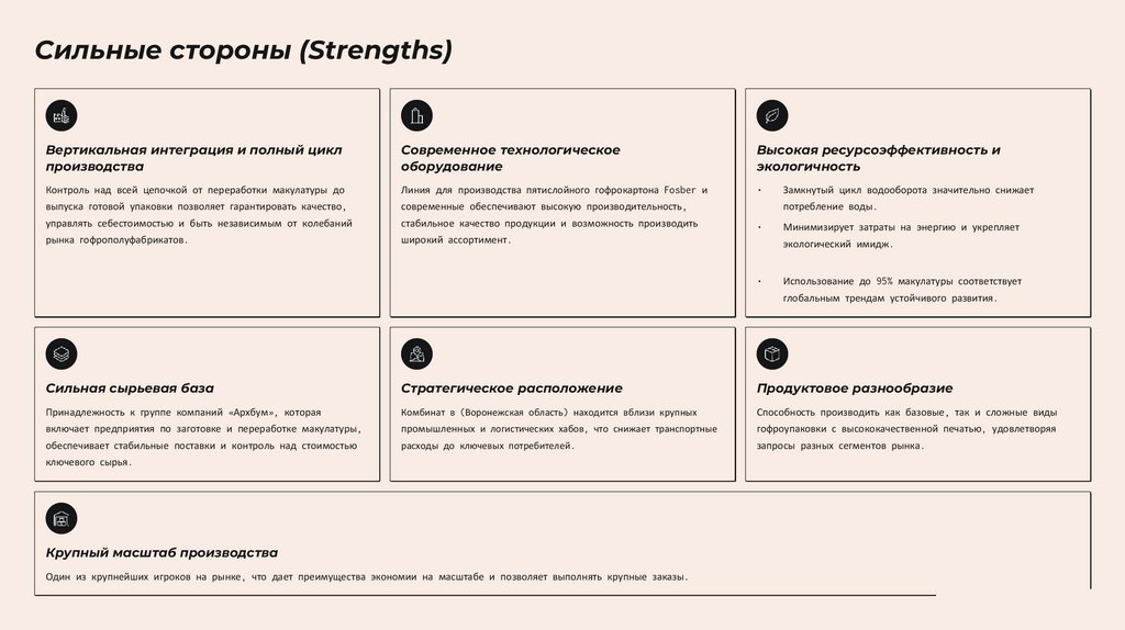 Сильные стороны (Strengths)Вертикальная интеграция и полный цикл