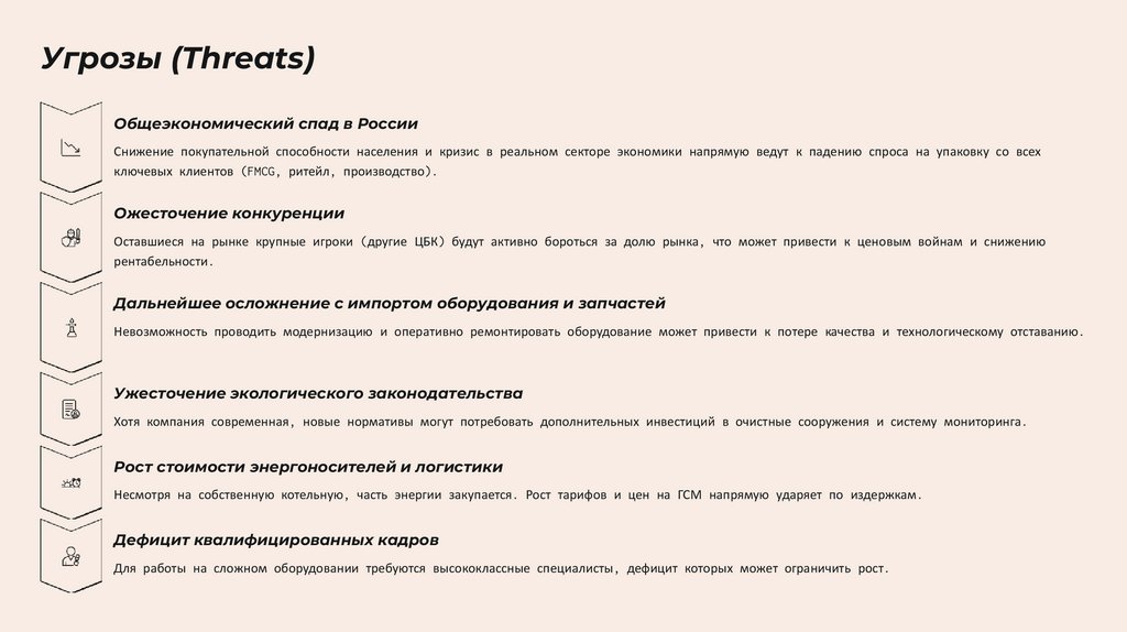 Угрозы (Threats)Общеэкономический спад в России