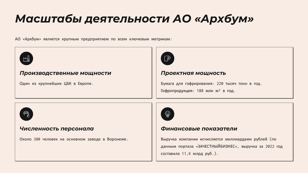 Масштабы деятельности АО «Архбум»АО «Архбум» является крупным предприятием по всем ключевым метрикам: