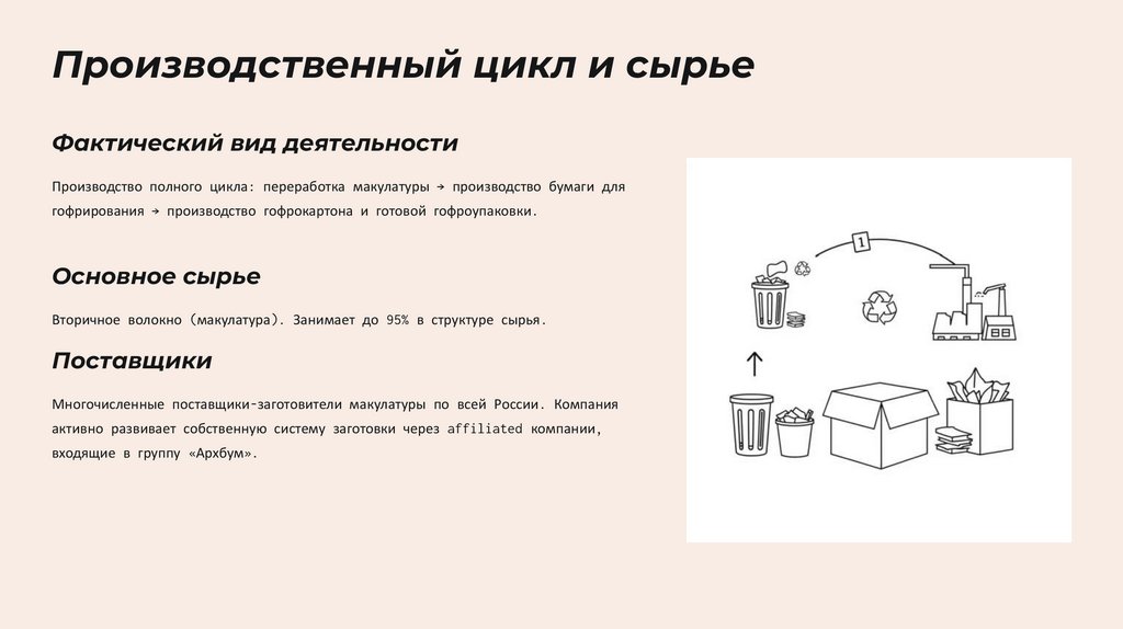 Производственный цикл и сырьеФактический вид деятельности