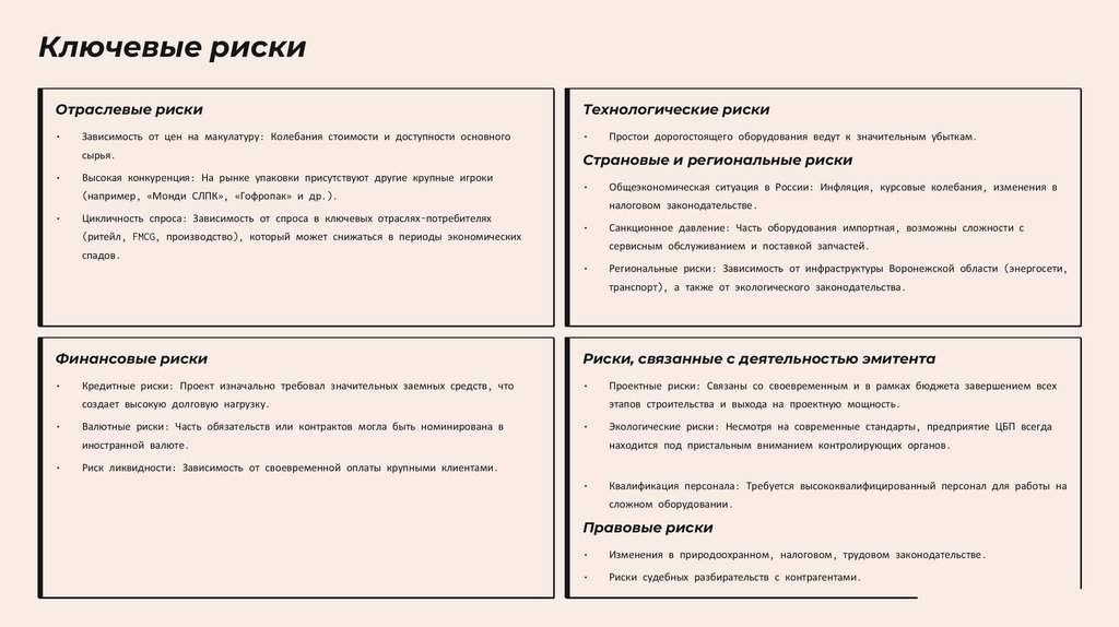 Ключевые рискиОтраслевые риски