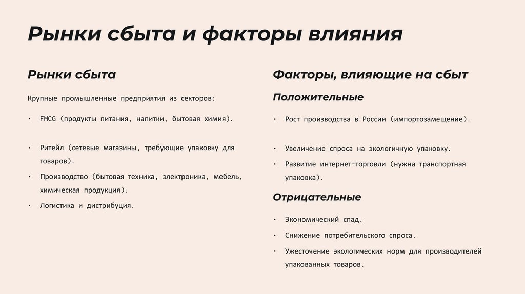 Рынки сбыта и факторы влиянияРынки сбыта