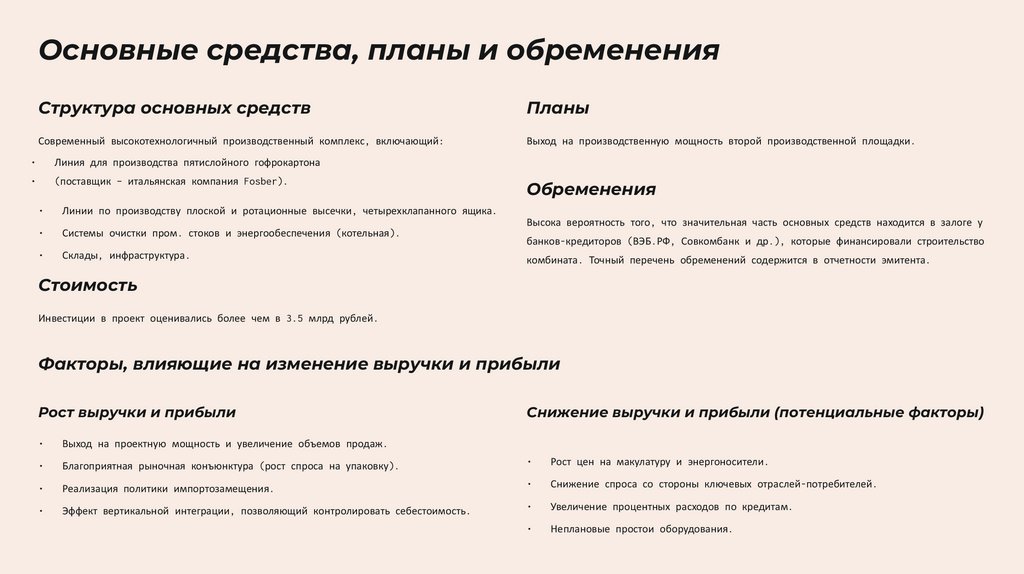 Хотя компания современная, новые нормативы могут потребовать дополнительных инвестиций в очистные сооружения и систему мониторинга.