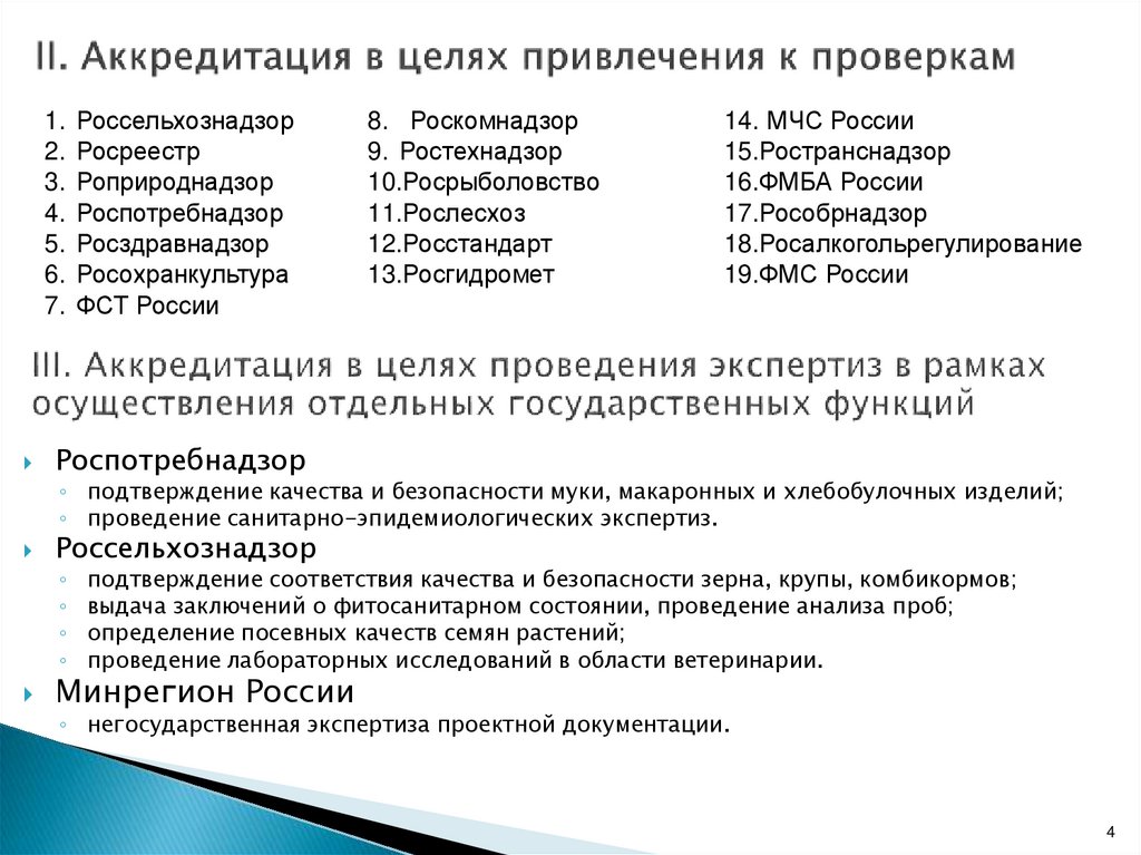 ◦ Полномочия ФОИВ в сфере аккредитации, которыми наделяется