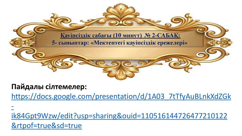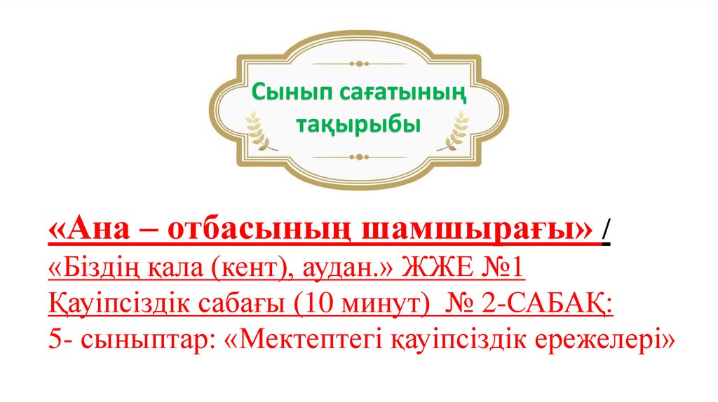 Қауіпсіздік сабағы (10 минут) № 2-САБАҚ: