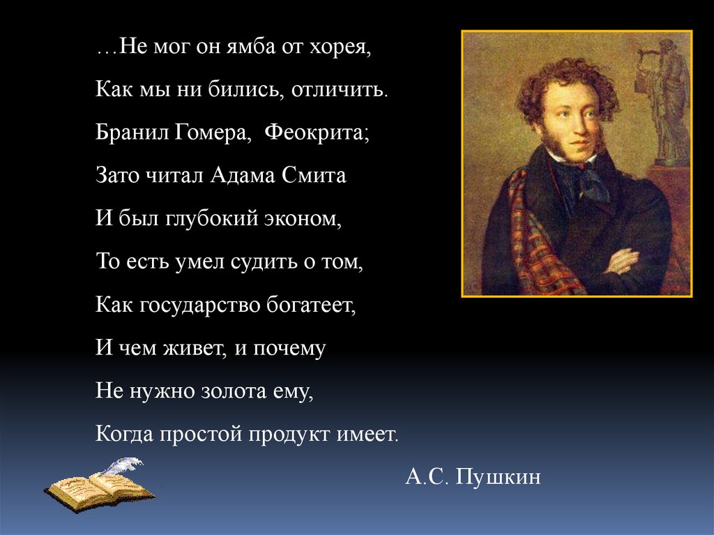 …Не мог он ямба от хорея,Как мы ни бились, отличить.