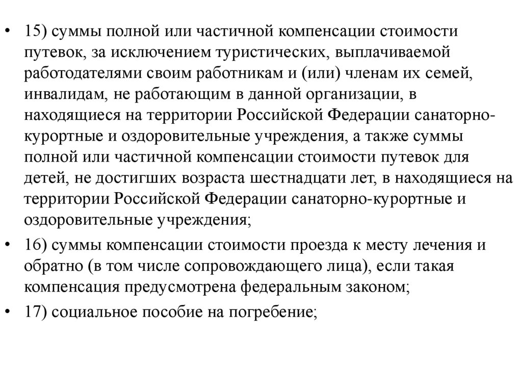 • 16) суммы компенсации стоимости проезда к месту лечения и