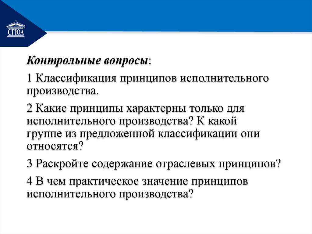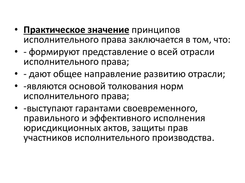 • Практическое значение принциповисполнительного права заключается в том, что: