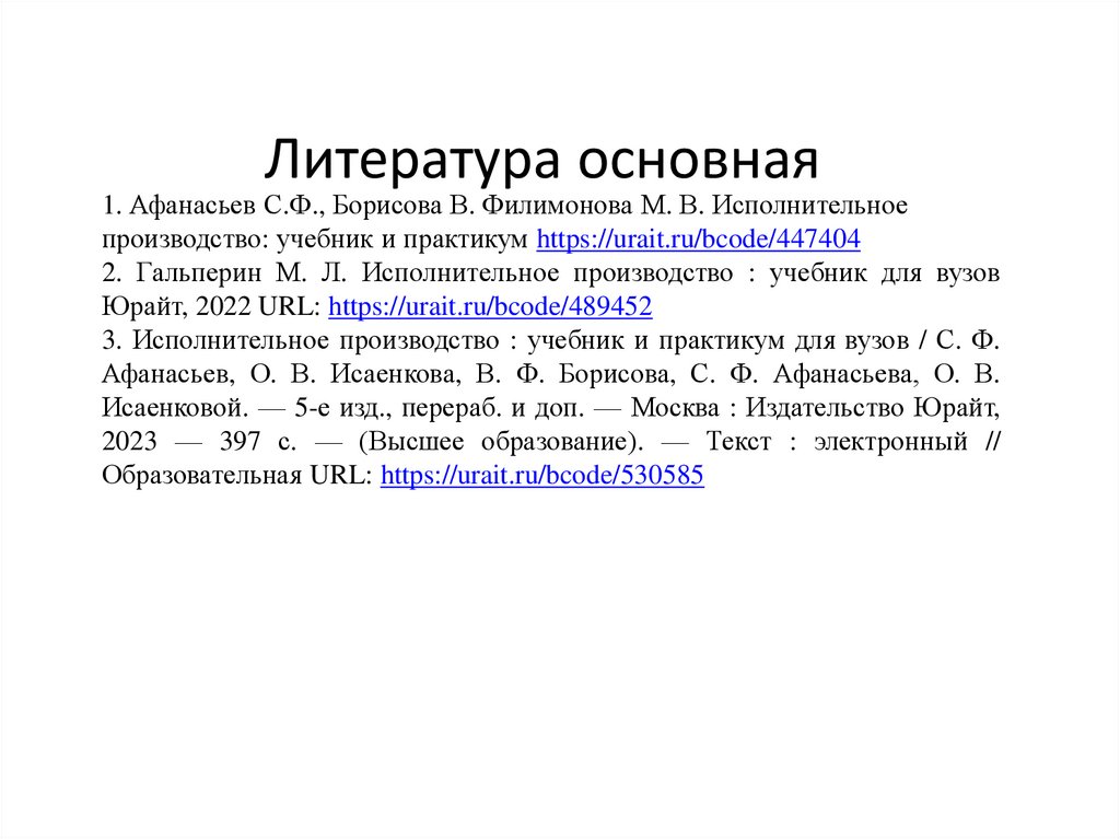 Литература основная1. Афанасьев С.Ф., Борисова В. Филимонова М. В. Исполнительное