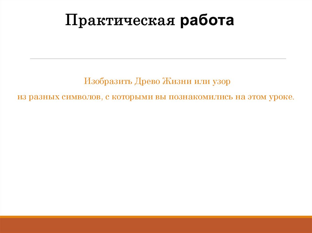 Изобразить Древо Жизни или узориз разных символов, с которыми вы познакомились на этом уроке.
