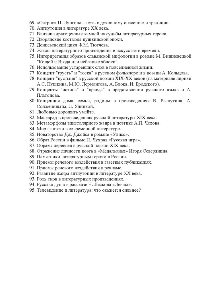 Темы для индивидуальных проектов по дисциплинам «Русский язык» и «Литература»