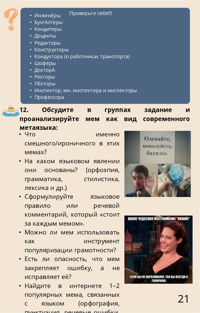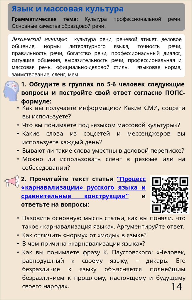 Язык и массовая культураГрамматическая тема: Культура