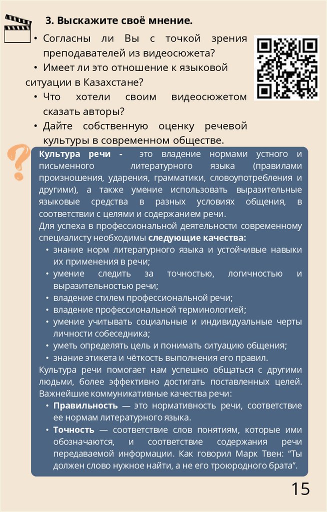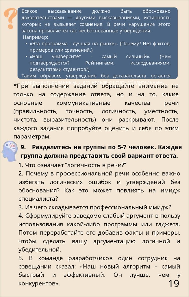 • Дайте собственную оценку речевой