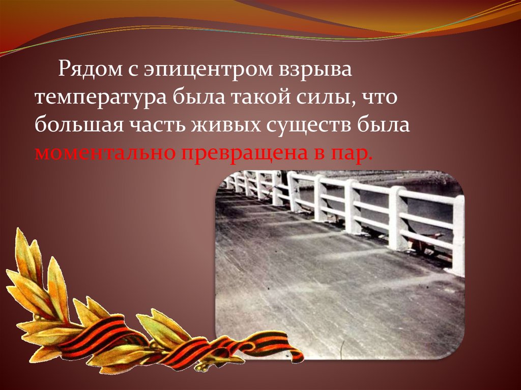 Тени на парапетах от людей, отпечаталисьдаже в полумиле к юго-востоку от эпицентра на