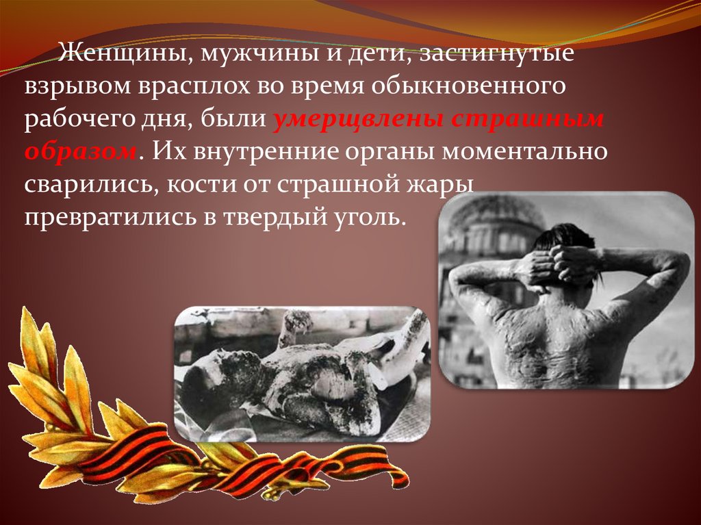 Женщины, мужчины и дети, застигнутыевзрывом врасплох во время обыкновенного