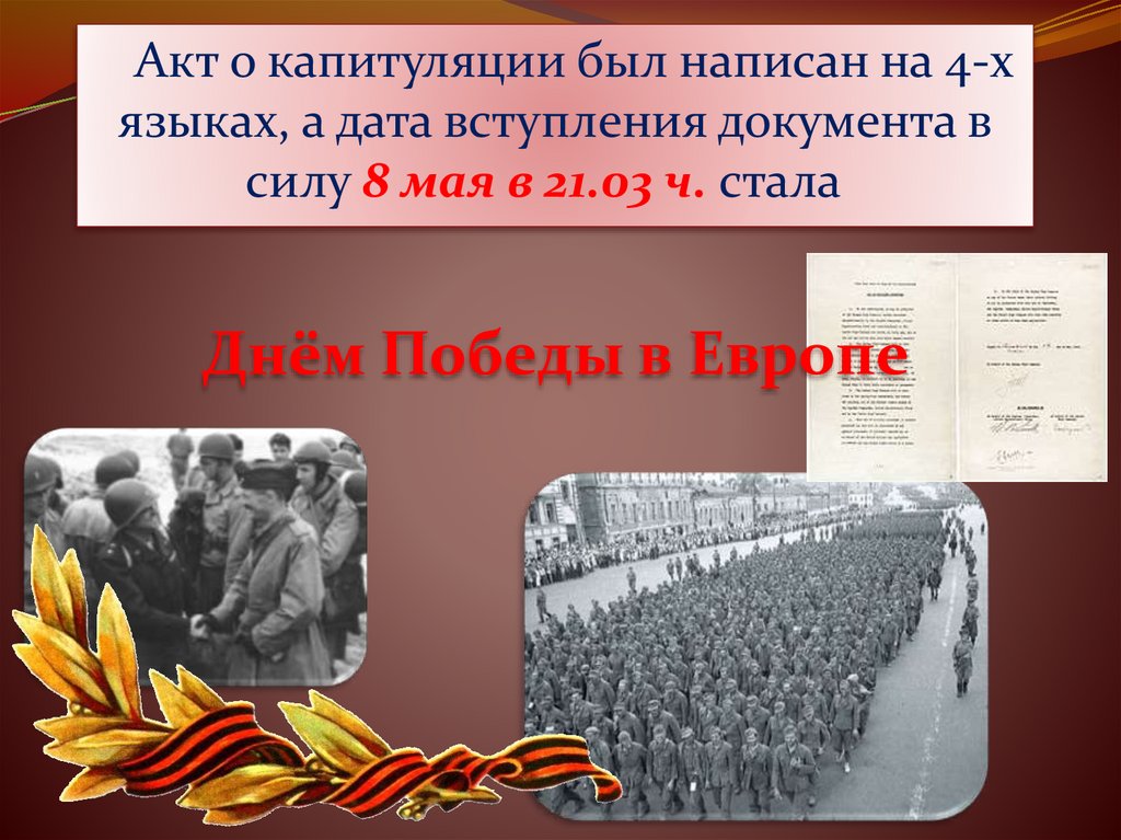 Акт о капитуляции был написан на 4-хязыках, а дата вступления документа в