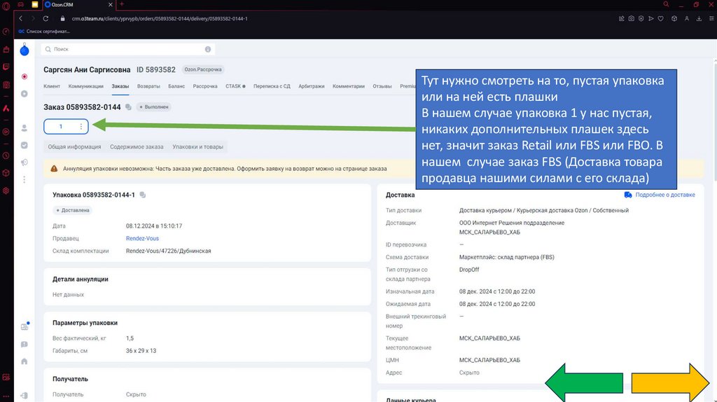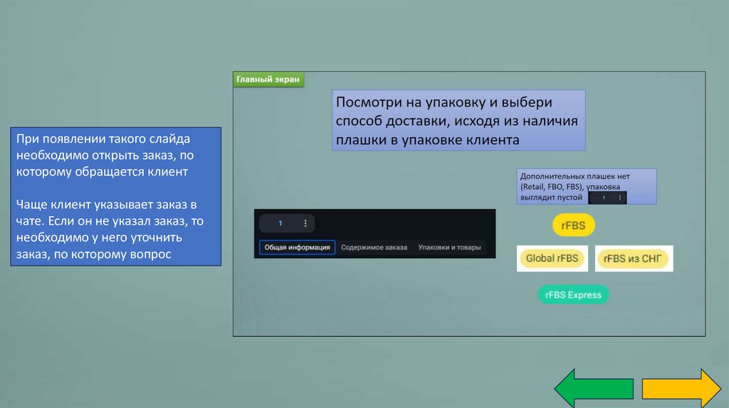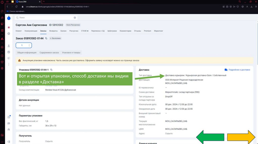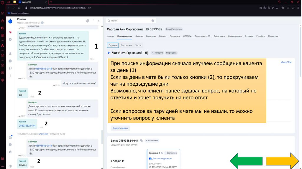 Если у клиента вопрос по возврату, то открывай раздел по возврату