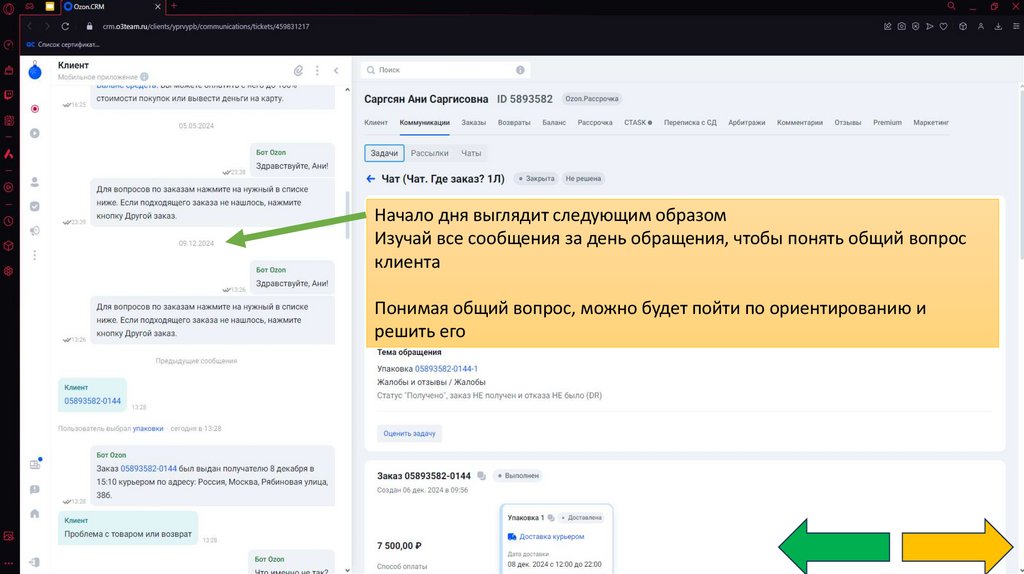 Начало дня выглядит следующим образомИзучай все сообщения за день обращения, чтобы понять общий вопрос
