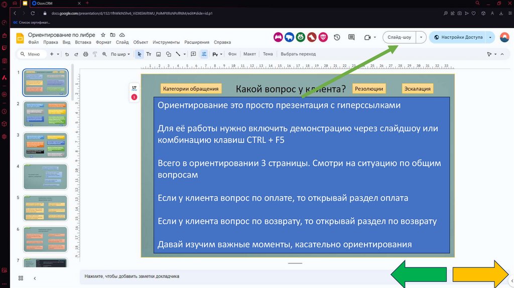 Ориентирование это просто презентация с гиперссылкамиДля её работы нужно включить демонстрацию через слайдшоу или