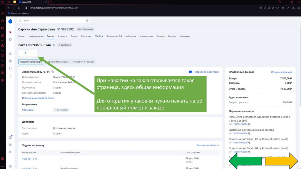 При нажатии на заказ открывается такаястраница, здесь общая информация