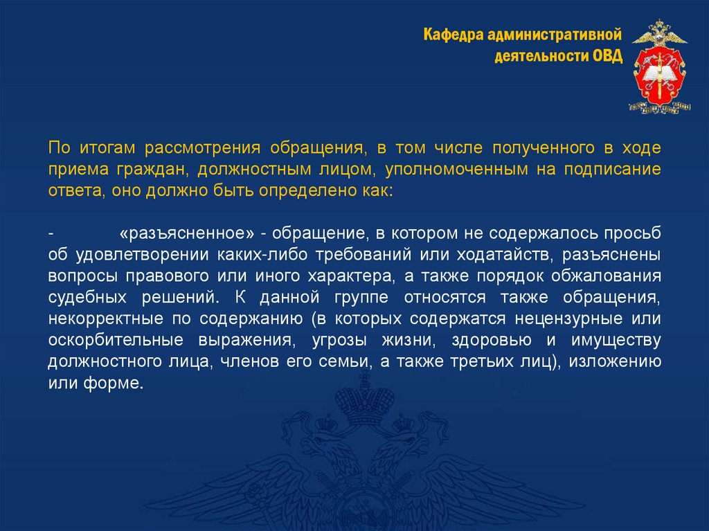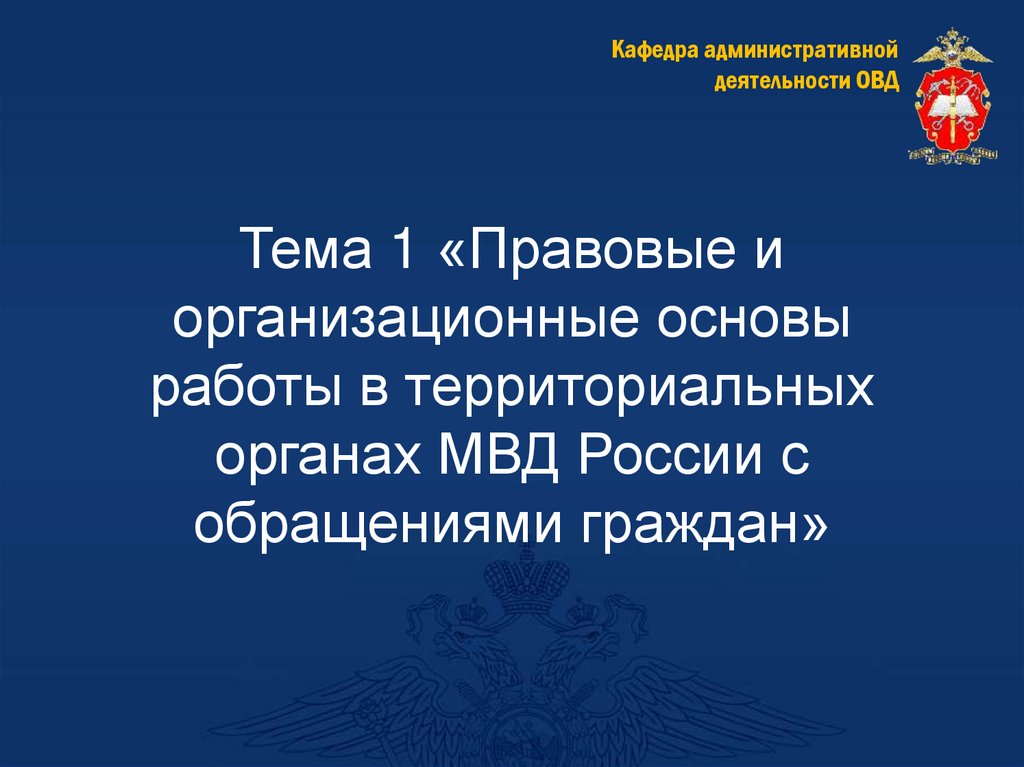 «Правовые и организационные основы работы в территориальных органах МВД России с обращениями граждан