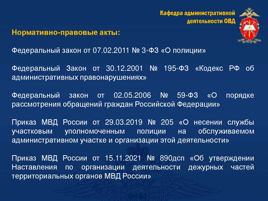 Приказ МВД России от 29.03.2019 № 205 «О несении службы